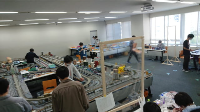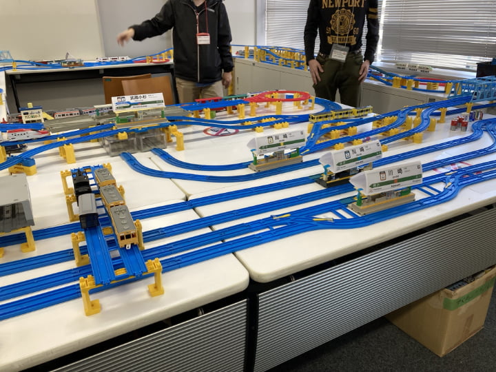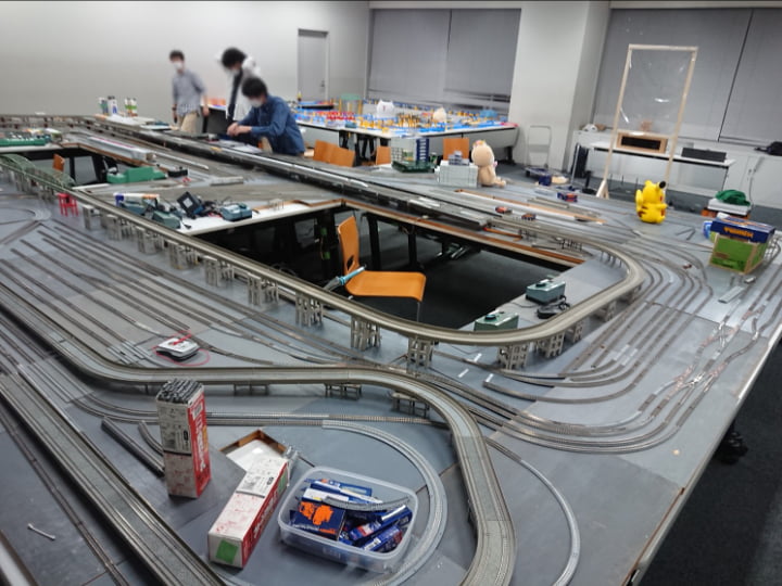 当会では毎年出展を続けており、当日は広い教室いっぱいにNゲージ、プラレールの